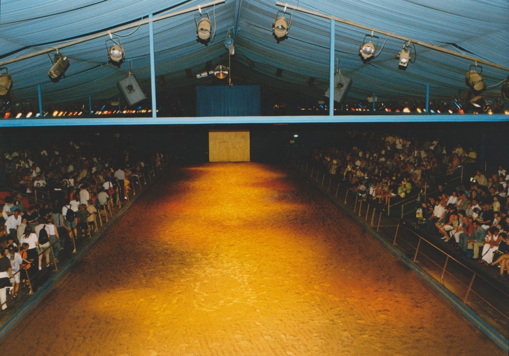 De tribunes waren eveneens in de vier kleuren rood, blauw, geel en groen geschilderd. Later kreeg ook de gehele voorgevel van het gebouw deze kleuren. Ik het laatste jaar werd de kleur rood zelfs vervangen door roze, waardoor het gebouw een kermisuitstraling kreeg.