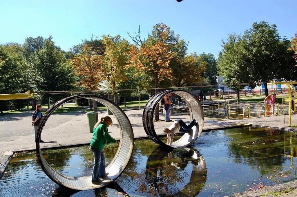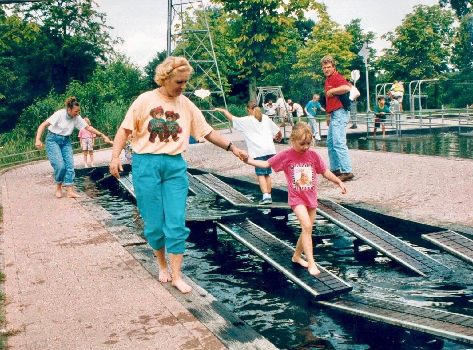 Naast de oude boerderij lag de populaire waterspeeltuin ‘Ooit gedacht aan Waterkracht’. Hier konden kinderen zich uitleven in tal van waterspeeltoestellen. Zouden hier ook veel ouders een nat pak hebben gehaald?