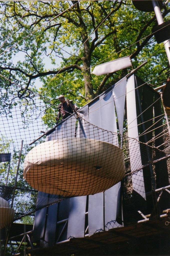 Temidden van de majestueuze eikenbomen had Rak de Reiger zijn prachtige nest gebouwd, een steigercontructie met hekwerk in de vorm van een arena. Hier vond dagelijks een adembenemend spektakel plaats waar acteurs zich waagden op de steigers en met zwaarden en vuur een indrukwekkend schouwspel opvoerden. Elk jaar kwam Rak de Reiger weer met vernuftige plannen om Het Land van Ooit te veroveren, maar telkens was er wel een heldhaftige Ooiter die deze plannen wist te dwarsbomen.