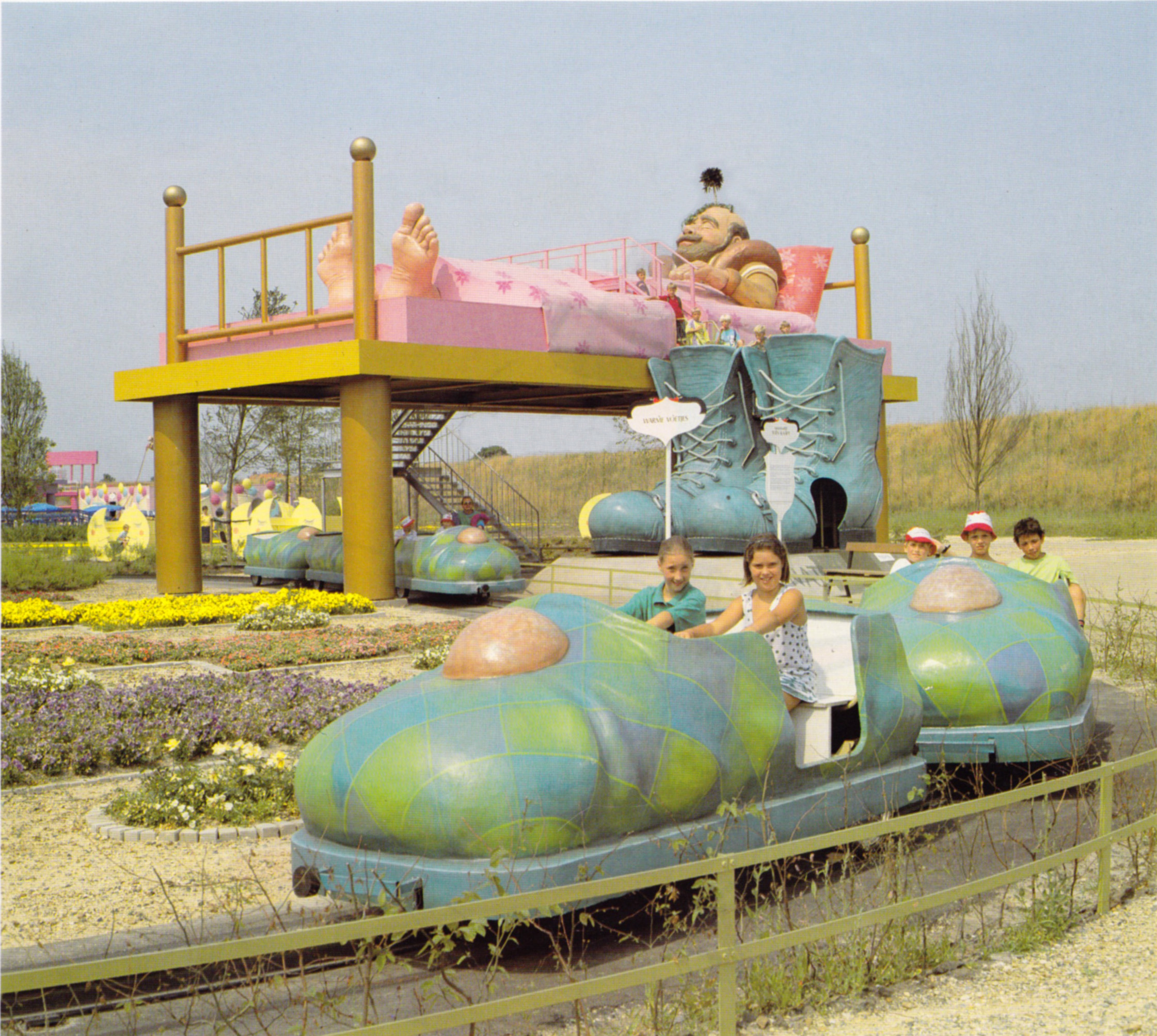 Dat neemt niet weg dat we ondertussen niet met zijn pantoffels kunnen spelen! Onder het bed van Toen vind je dan ook de attractie genaamd ‘Warme Voetjes’. Hierin konden koppels een rondje rijden in een van de reuzenpantoffels met trapaandrijving. Ook konden bezoekers – mits ze een beetje stil waren – stiekem het bed op klimmen via een geheime gang in de laarzen van Toen.